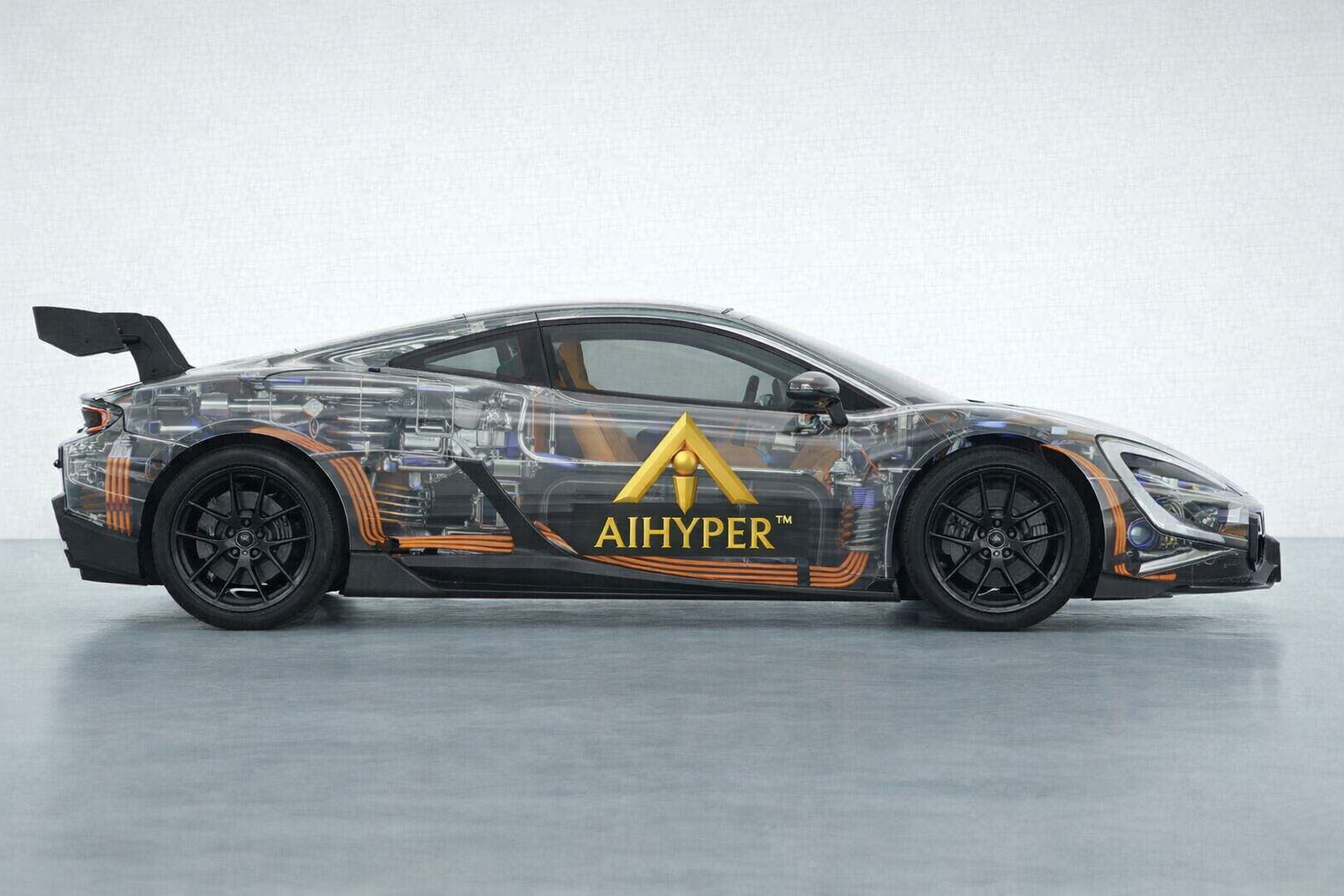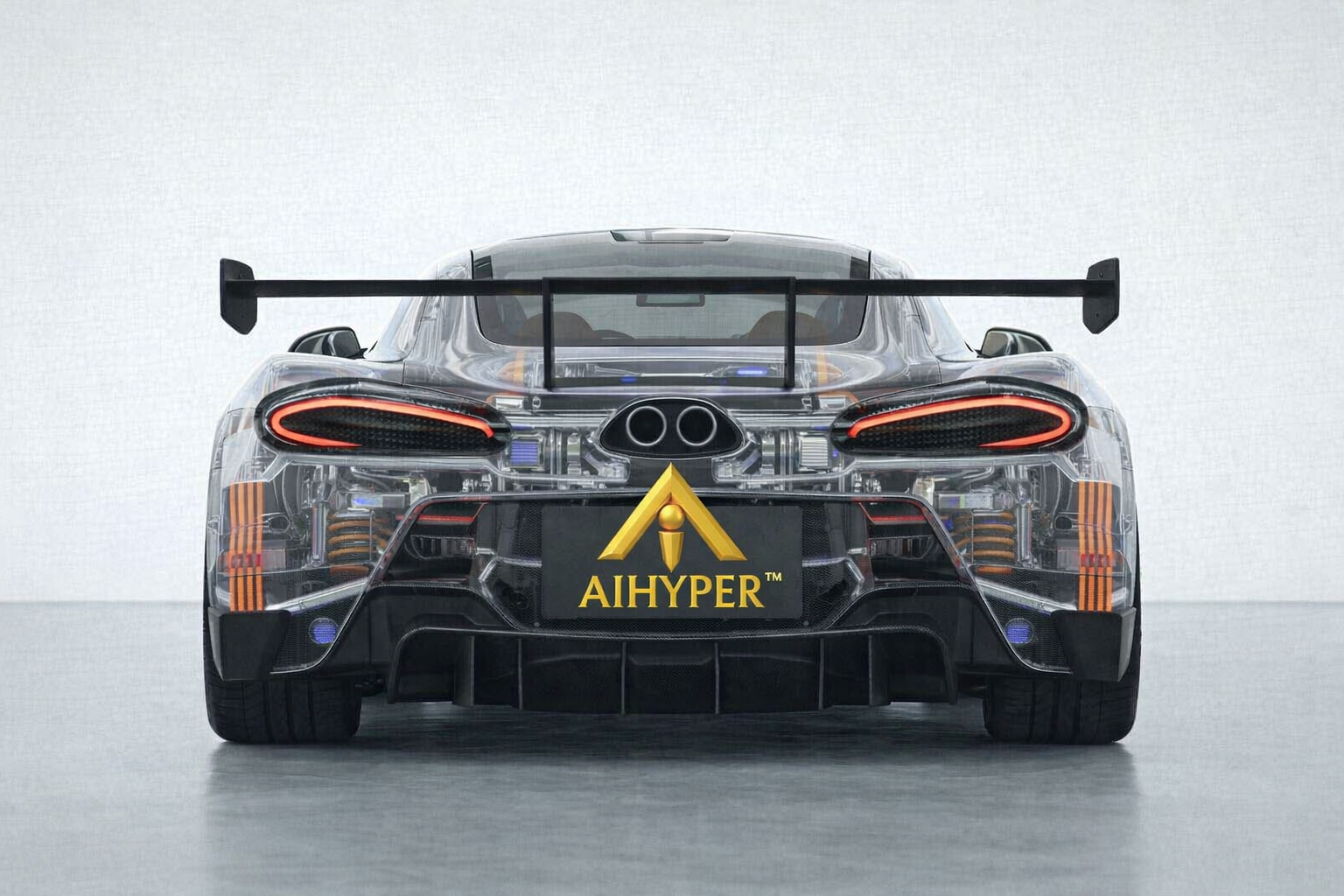 The AIHYPER powertrain features a seven-speed sequential transaxle gearbox with an electro-hydraulically actuated multi-plate clutch